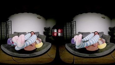 No one but Lilith can make pastel socks look so cute and sexy at the same time. This college girl brunette is acting like a spoiled brat when her lover refuses to give in what she wants. Instead, Lilith has a different idea of enticing the stud. She raises her legs to show off her socked feet, and any foot-obsessed connoisseur would be jealous of the hunk's position right now. The seductive doll takes off her socks, and flaunts her yellowish soles and her pedicured digits for the stallion to give a good shrimping. The strong smell of her feet fills the room, and taking a whiff of the aroma will no doubt drive horny men insane. This inked minx spices up the room further and turns around to draw the stud's attention to her red lingerie that highlights her supple buttcheeks before stripping off her top and exposing her perky small titties. Lilith seems to have satisfied her lover one last time by giving him a nice, warm, sensual footjob.