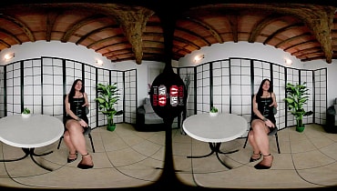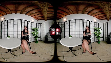 Experience the thrill of your first real-life fetish meetup in immersive VR with the captivating Madame Cherry, the mysterious dark-haired Italian beauty you've been obsessing over on your favorite app. Seated across from you at a small round table in a dimly lit bar, she arrives in a tight black top, short skirt, glossy high heels, and ultra-sheer black nylons that hug her long legs and perfectly arched feet. Her olive skin and sultry gaze lock onto yours as she leans in with binaural ASMR whispers, teasing how she knows you've stared at her nylon soles online and promising to corrupt her shy admirer tonight. She crosses her legs slowly, brushing her nylon-clad foot against your leg under the table for that electric first contact, then slips her heels off partially to dangle and flex her toes, the sheer fabric stretching over her warm soles and revealing every wrinkle. Putting one foot boldly on the table right in your POV face, she commands you to stare, imagine smelling the silky nylon, and confess your desires while she rubs her plants sensually and spreads her legs wider. The dirty talk escalates as she lifts her skirt, fingers herself slowly while keeping her nylon feet front and center—licking her own toes through the sheer material, moaning how wet it makes her to have you worship them. In the intense second half, she peels off the stockings with deliberate drags, leaving her smooth bare feet glistening as she masturbates harder, pushing her soles closer for you to fantasize licking and sucking during her building climax. Feet tense and curl in ecstasy right before your eyes as she orgasms powerfully, staring into the camera and declaring you're hers now—time to leave the bar and continue at her place. Pure VR foot fetish seduction with nonstop nylon teasing, close-up sole play, dirty talk, and binaural immersion in superior 7K quality.