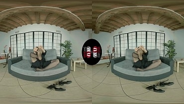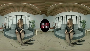 Beautiful babe Violet loves eating strawberries and massaging her sexy feet in nylons in VR