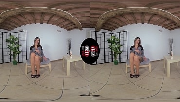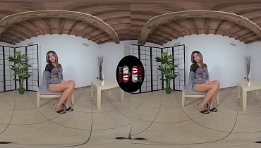 Unreal girl Katia Casadei takes off her high heels and tries on her sexy fishnet stockings in VR