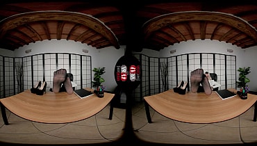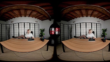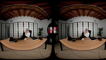 Professor Dalila Dark's strong appeal suddenly shrouds the dull office in tension. Something irresistible from this delicious-looking woman creates an eerie but thrilling feeling. She is rocking a button-down top, patterned pantyhose, and killer heels. While chatting with the "unlucky" student, an incredible idea comes to her mind—unbearable foot tease. With that, Dalita sets aside the footwear, crinkles the sexy soles, wriggles the suckable toes, and sniffs the livid smell before settling on top of the table. The blonde lady shamelessly glides the pads against the student's face while her latex panties are showing. Then, the tattooed professor loses all professionalism and proceeds to boast about her tits, shaved pussy, and supple ass. After that, Dalila wields the vibrator, making her polished toes curl and her hole quiver. With a satisfied smile on her face, she abruptly ends the chat.