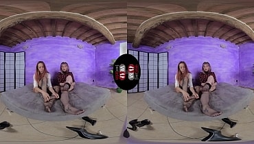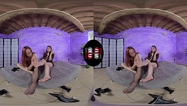 Smoking-hot Elettra and Ammalia are sitting at home and watching TV. Their sensational legs delicately wrapped in black thigh-high stockings will take your breath away. Impossibly beautiful Elettra and Ammalia take off their black pointed-toe stilettos, roll down their black stockings one at a time, caress and massage each other’s shapely legs, and sniff and play with each other’s delicious feet. Do you like how soft-looking their fabulous feet are?